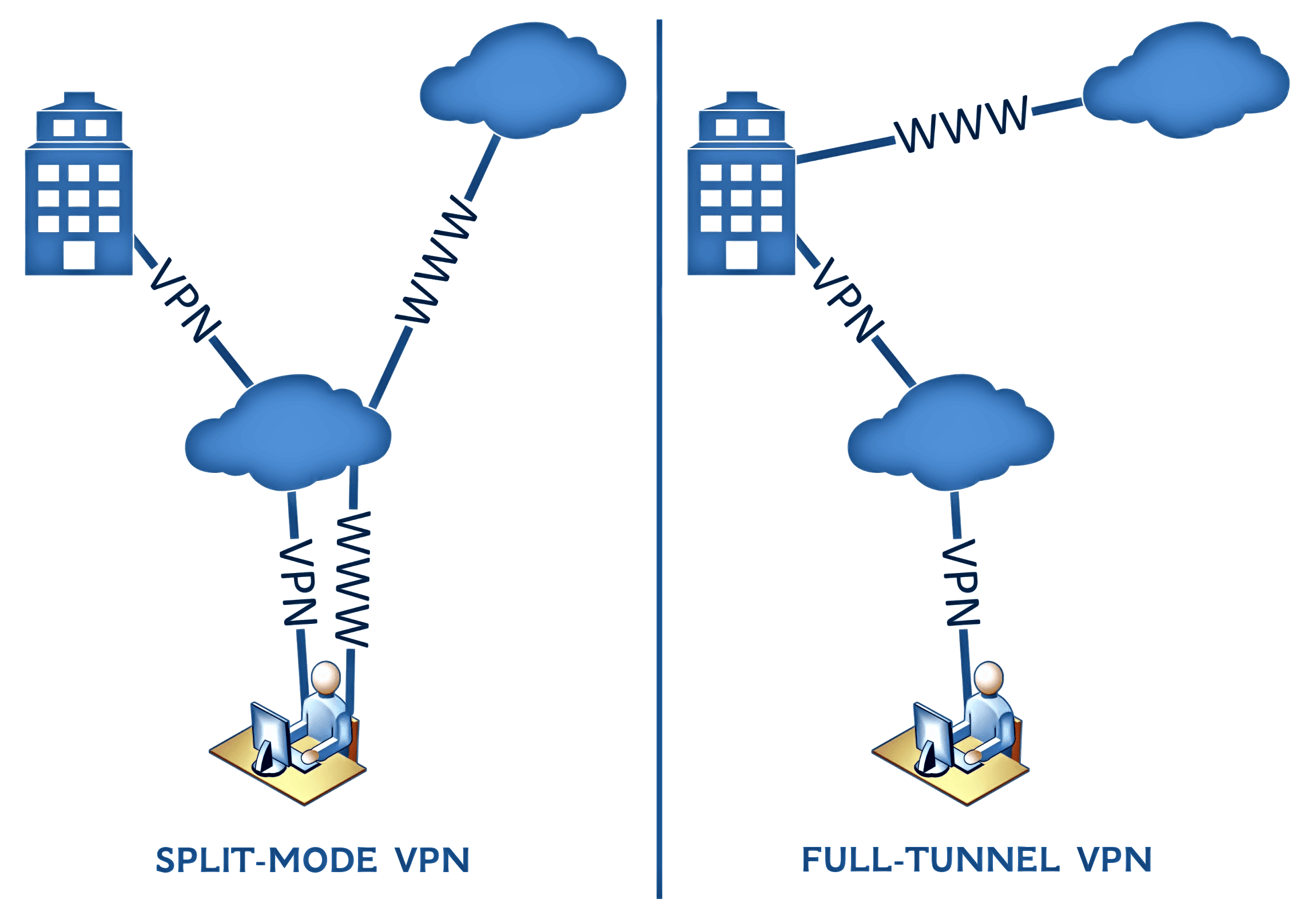 A “Split-Mode” VPN is necessary to access at the same time both local resources and remote resources available by the VPN. It’s used, for instance, in working environments to divide up the enterprise’s VPN traffic and the other personal non-VPN traffic. It could not be clear how DNS requests are addressed in this case.