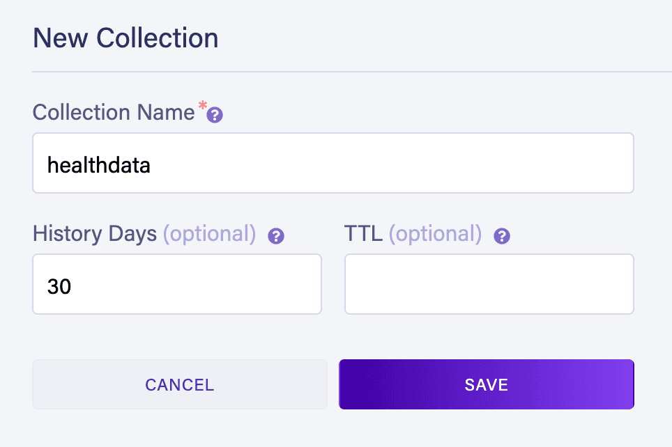 Next, let’s create the HealthData collection in Fauna to store the health vitals of an individual.