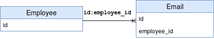 It simply means that our Email entity will have a foreign key column named employee_id referring to the primary attribute id of our Employee entity.