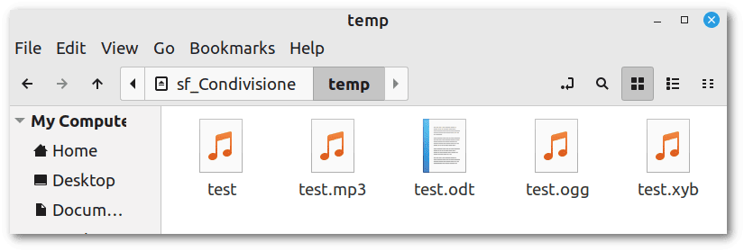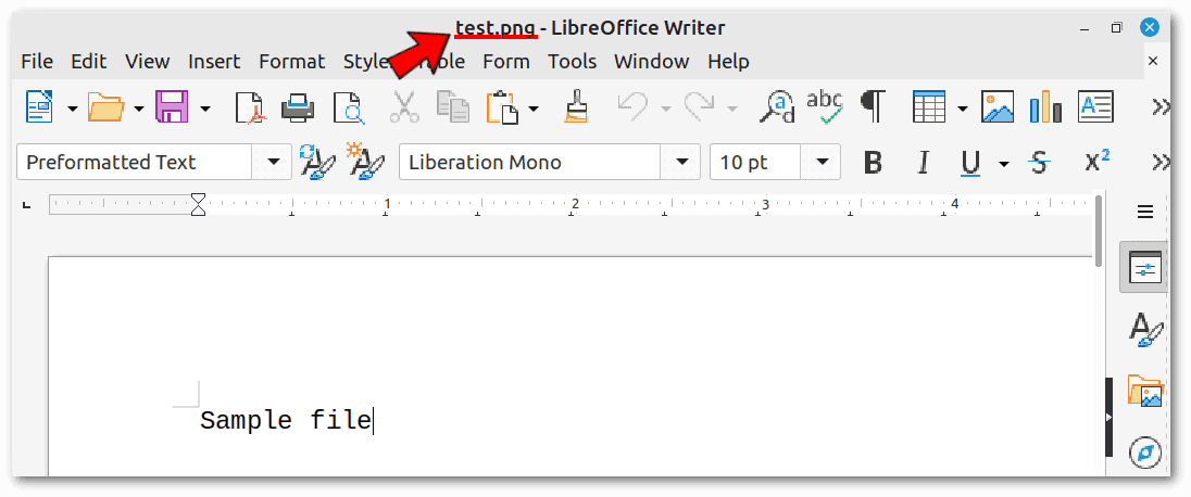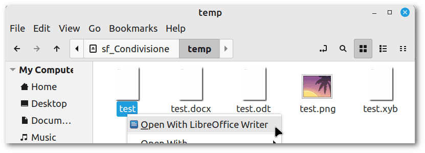 Let’s create a test file with LibreOffice Writer and copy it, as in the previous cases, with different extensions:
