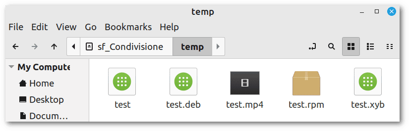 The Nemo file manager presents files with the following icons, each of which indicates both the type of content and its association with a program:
