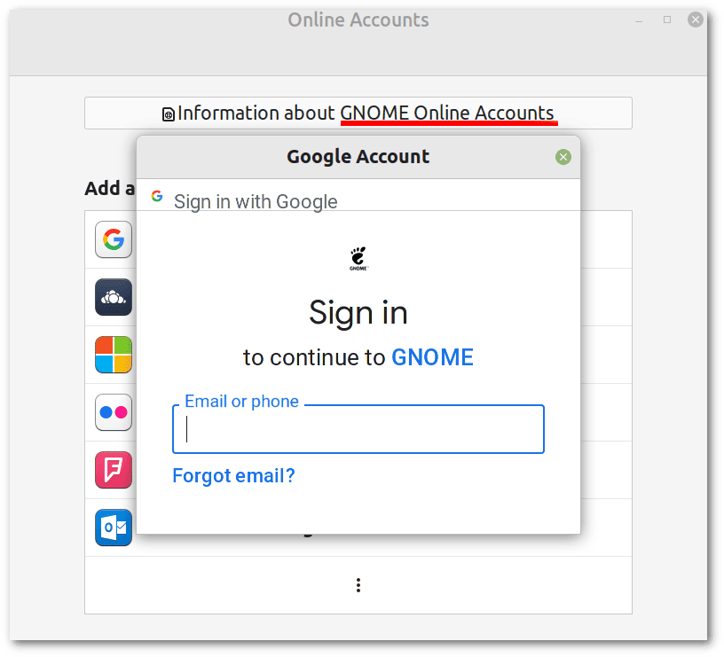To see it in action, let’s open the Settings application on our GNOME or Cinnamon desktop and click Online Accounts. Then, let’s select Google from the list of available providers and authenticate: