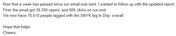 - the email is sent out to a targeted segment of the full list (usually about 40-60K)