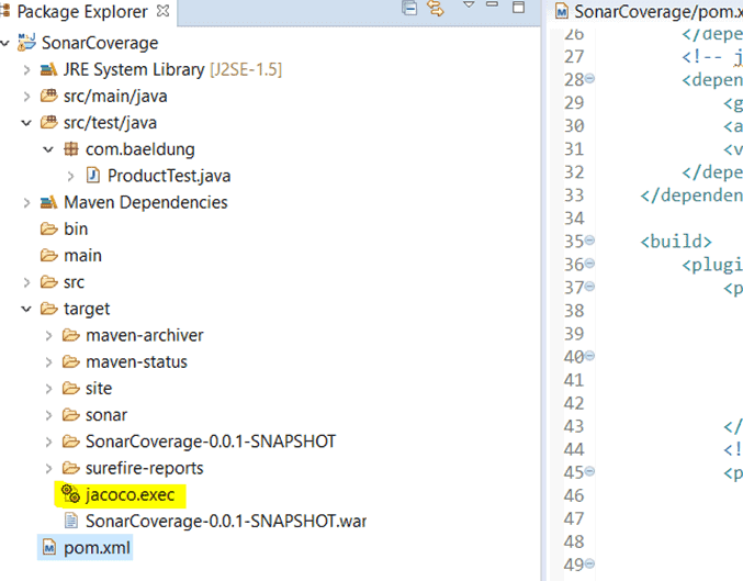 Notice that it creates a file named jacoco.exec in the target folder of the project.