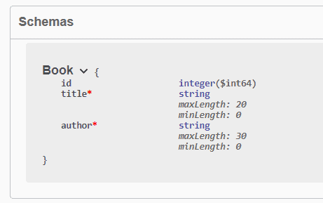 For instance, if we have a Book object passed to our API for creating or updating books, we can annotate the request body to document it: