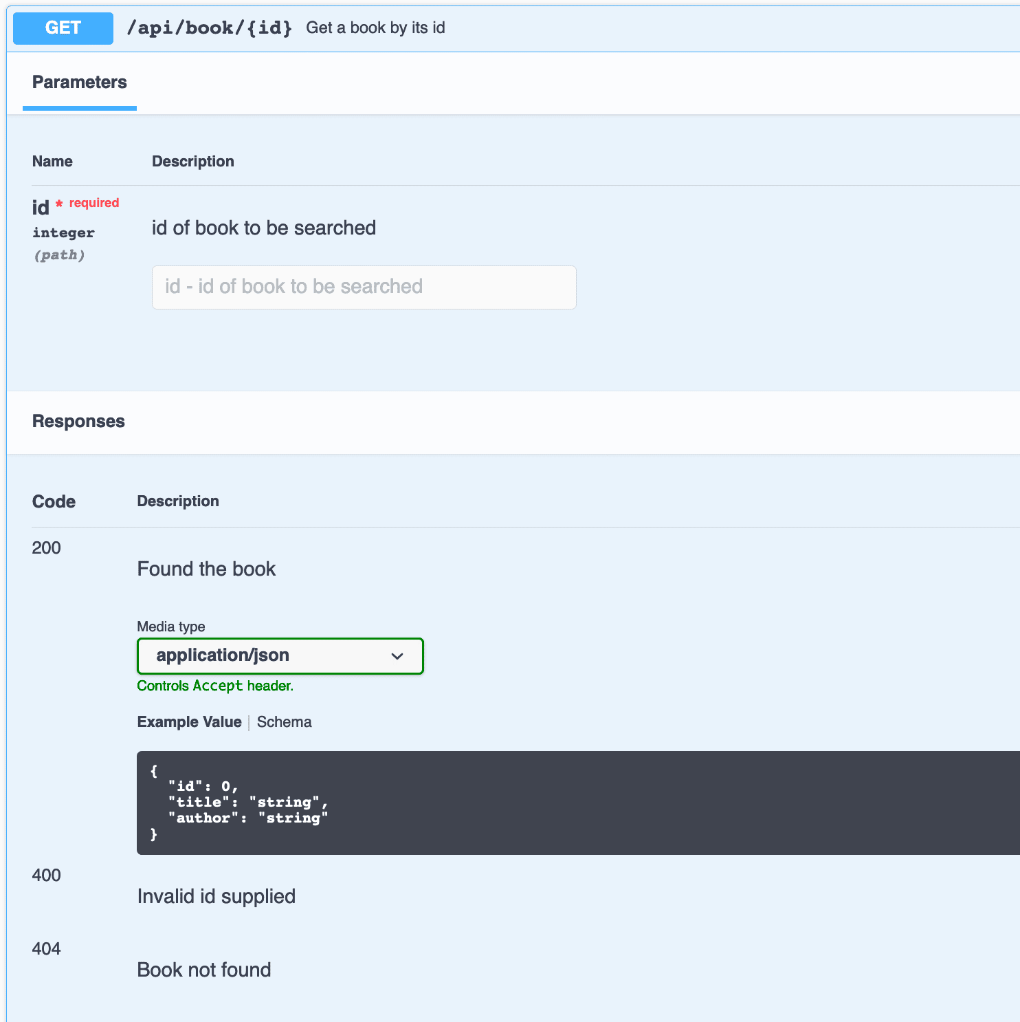 Let’s drill down to the /api/book endpoint and see the details for its request and response: