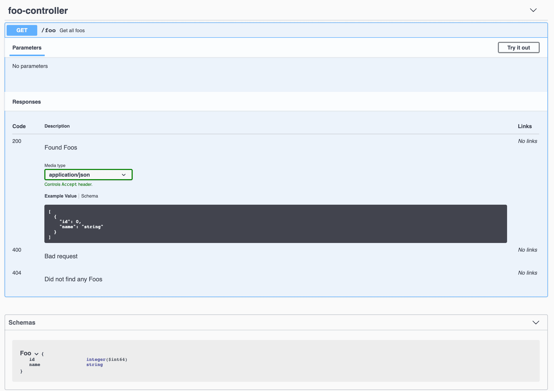 Now, when we hit our API documentation URL, we’ll see the Foo API as well: