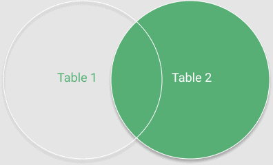 The graphical representation of this kind of join is a mirror reflection of the one we’ve illustrated for the LEFT JOIN: